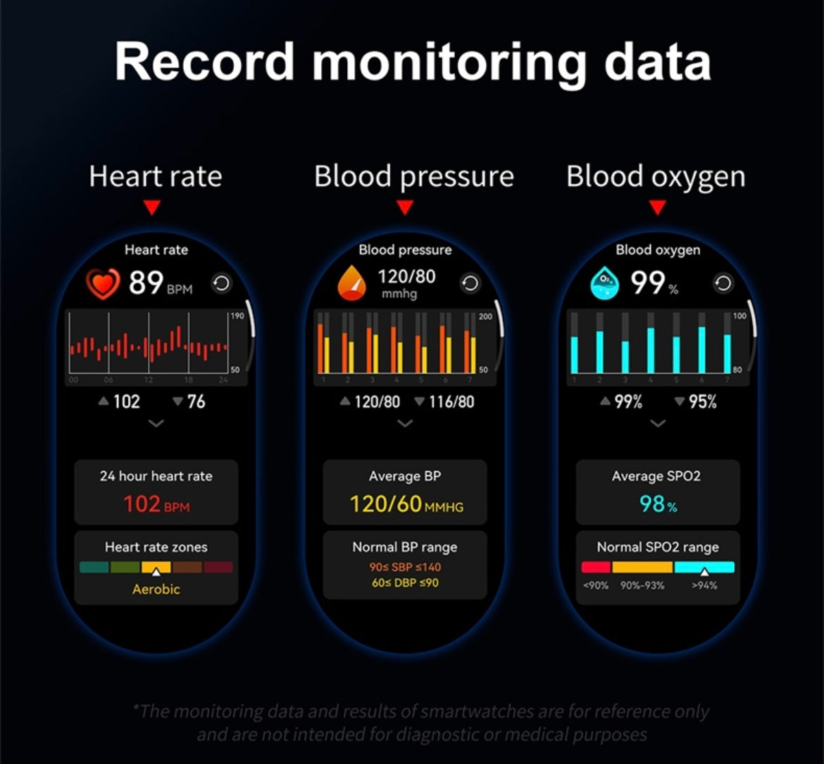 - Μέτρηση καρδιακών παλμών, αρτηριακής πίεσης, οξυγόνου στο αίμα, θερμοκρασίας